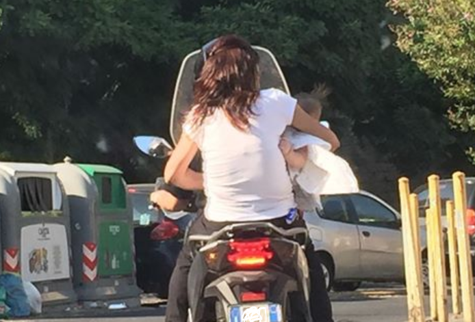 Naples. A young mother rides a scooter with her newborn baby in her arms. The photo has gone viral. It happened on Via Girolamo Santacroce in the Avvocata neighborhood. The photo (sent by a resident) was posted yesterday by regional councilor Francesco Emilio Borrelli, who is committed to combating incivility in the city of Naples. "This is bordering on madness... how can we expect children to be civil if adults behave like this?" Borrelli wrote on his Facebook page, receiving hundreds of reactions, comments, and shares.