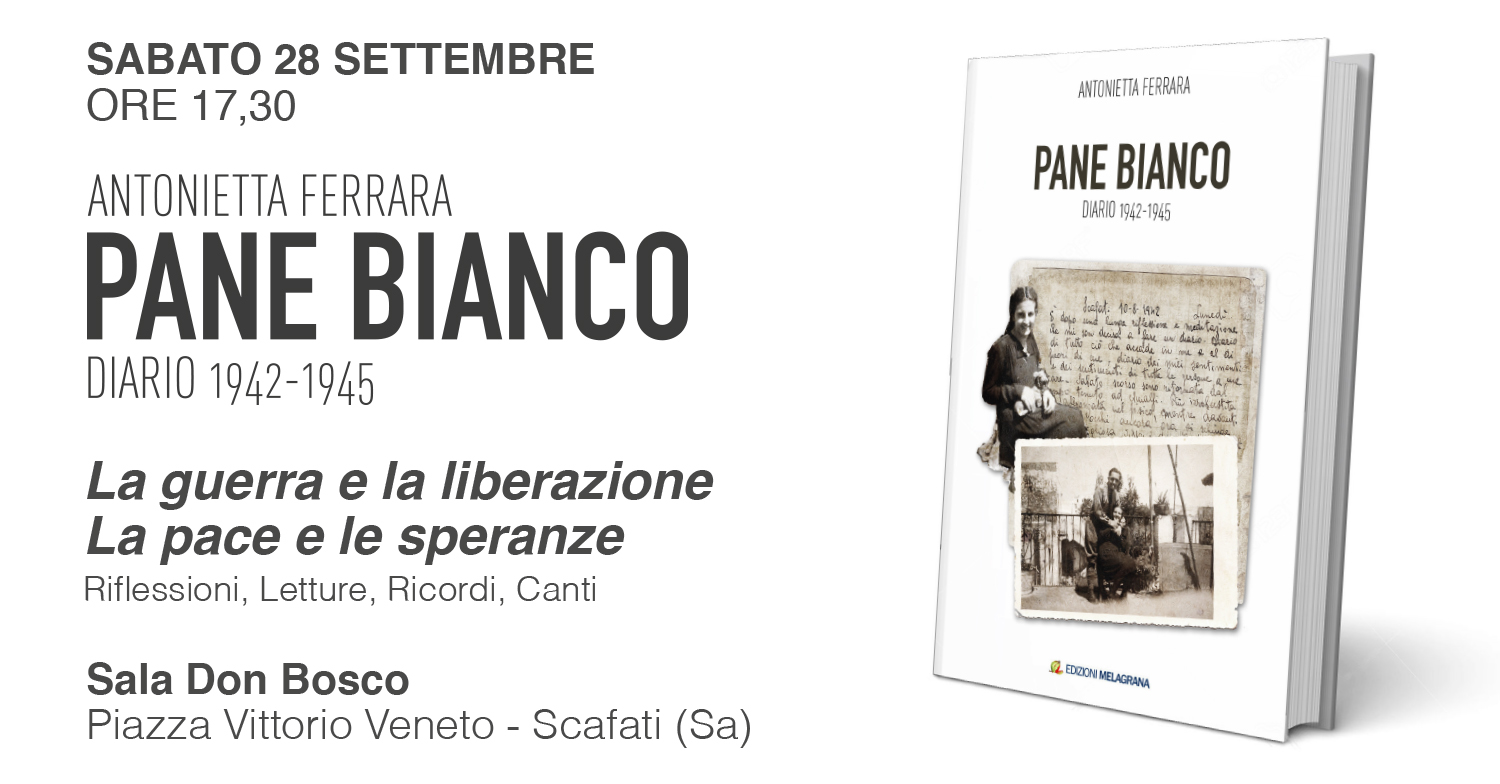A diary in which a young woman from Scafati recorded the events, thoughts, and doubts of her life from 1942 to 1945. "Pane Bianco" by Antonietta Ferrara will be presented at the Sala Don Bosco in Scafati (Piazza Vittorio Veneto) on Saturday, September 28th at 5:30 pm. This presentation/event, coordinated by Pasquale Formisano, will feature a presentation by Domenico D'Alessandro, the principal of Scafati's Caccioppoli High School. Several "days" from the young author's diary will be read by Elena Fiorenza and Domenico Maria Corrado, accompanied by violinist Ilario Ruopolo, alternating with musical performances by Rosanna Monsurrò (voice) and Gabriella Marolda (piano).