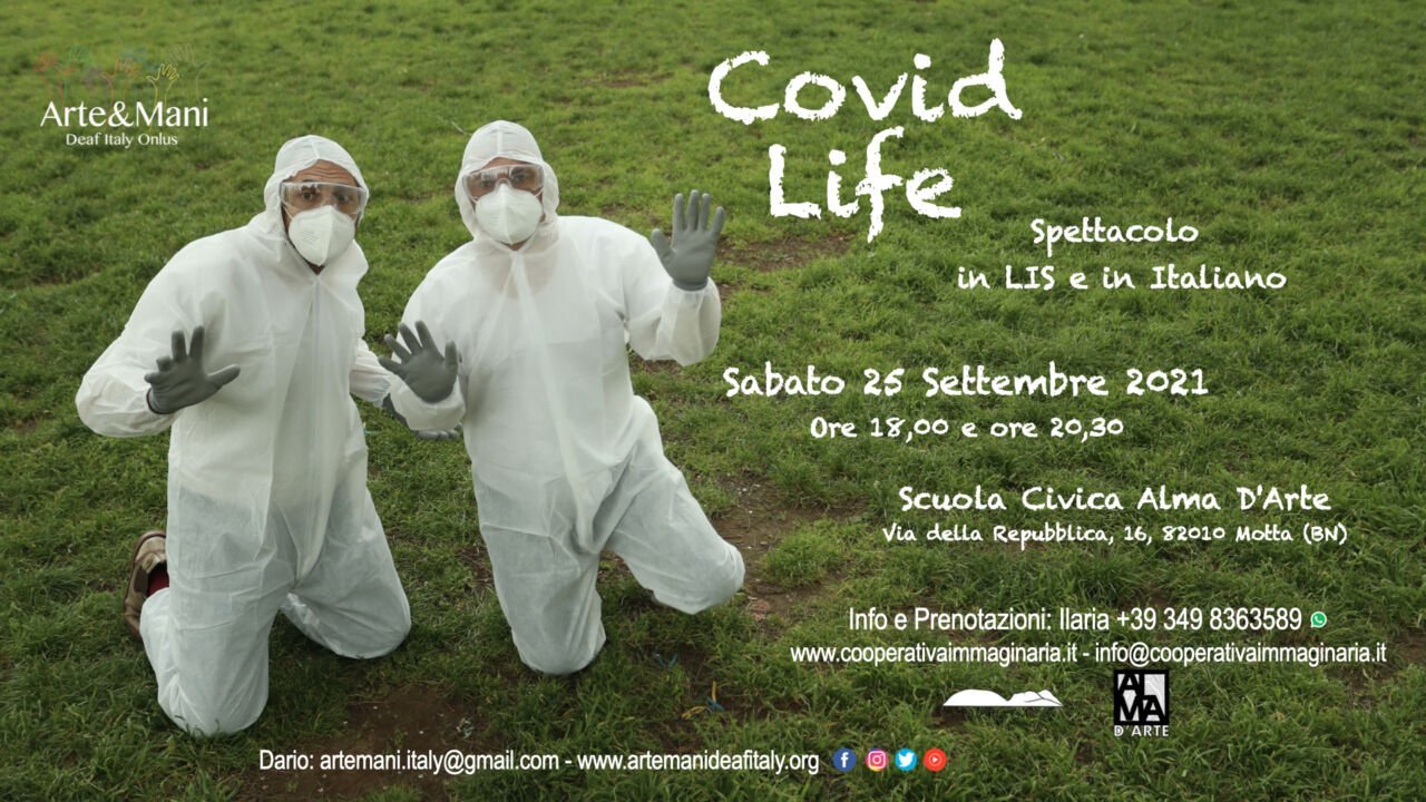 The company Arte&Mani Deaf Italy Onlus, in collaboration with the Immaginaria cooperative, present, on September 25th at the Scuola Civica Alma d'Arte, the show “Covid Life”, a new original and unpublished show in LIS and Italian, “child” of this pandemic.