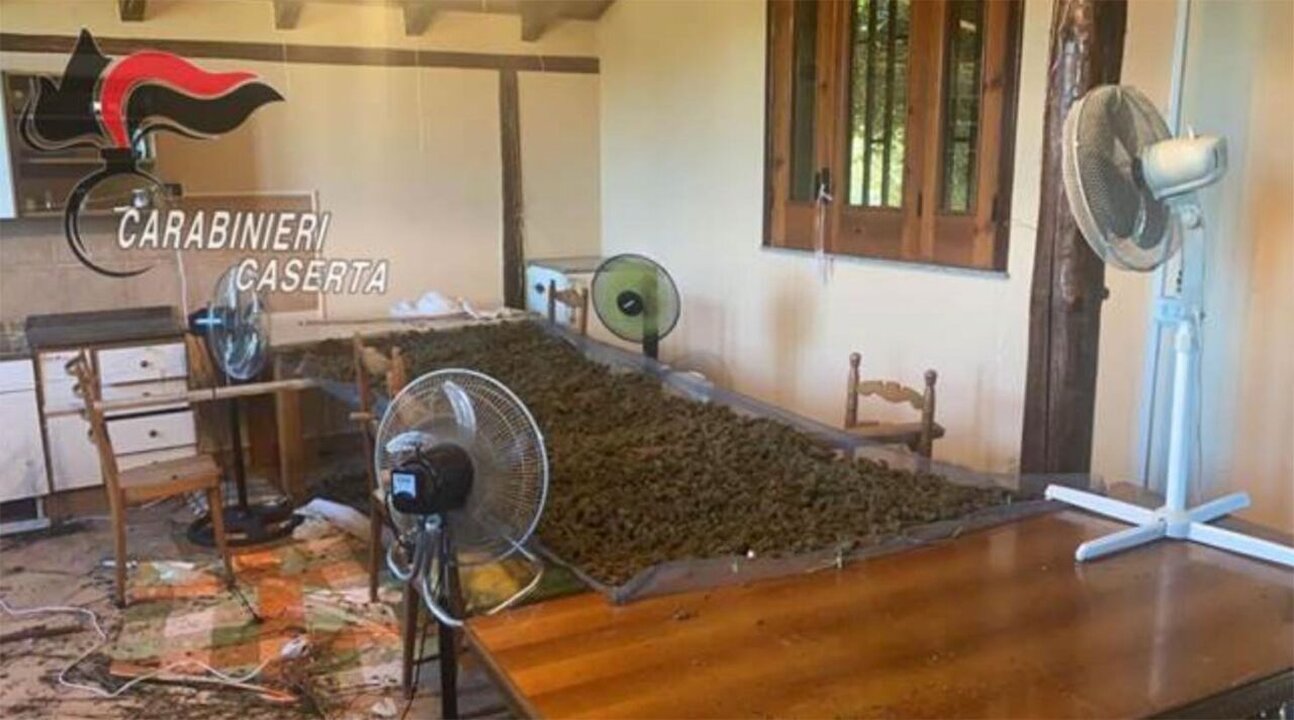 During the service, the Carabinieri soldiers found, in Villa di Briano in the Crocelle area, inside a farmhouse, 15 kg of marijuana lying on a nylon sheet, 4 fans for drying the narcotic, and various material for the packaging of doses. What was found was seized. The inspection and immediate findings of the case were carried out by the soldiers of the Investigative Unit of the Carabinieri Group of Aversa. Investigations underway.