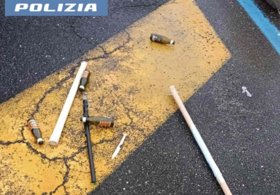 The officers, supported by the Forensic Police, recovered clubs, blunt objects, and even kitchen knives along the roadside. All the material was seized, while the 80 Lazio fans were detained and identified individually.