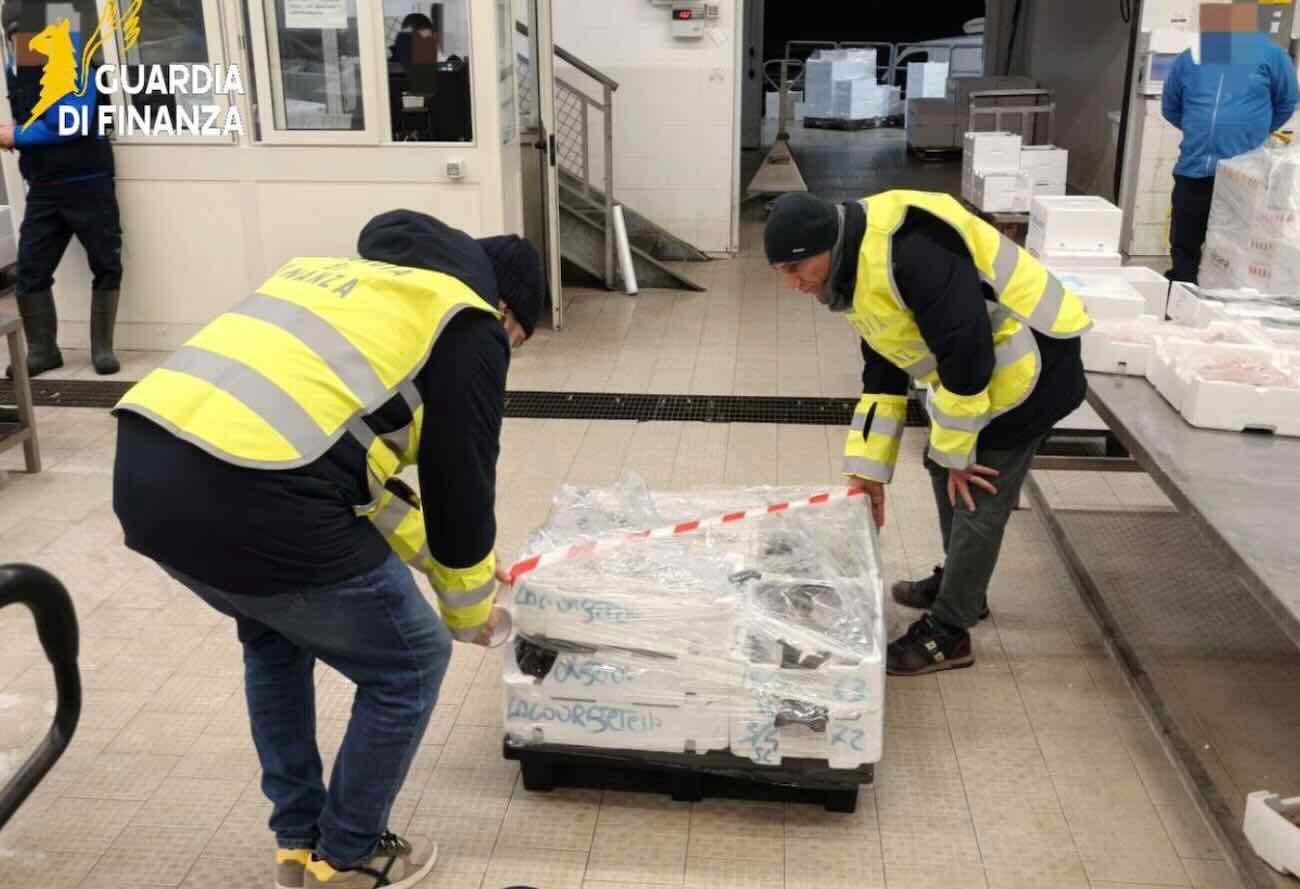Salerno – Finance police from the Naples Naval Air Operations Department seized 300 kilograms of fish products this morning in the immediate vicinity of the Salerno fish market. The catch, valued at approximately €6,000, lacked labeling or any traceability information, making it potentially unsafe for human consumption, according to local health authority veterinarians.